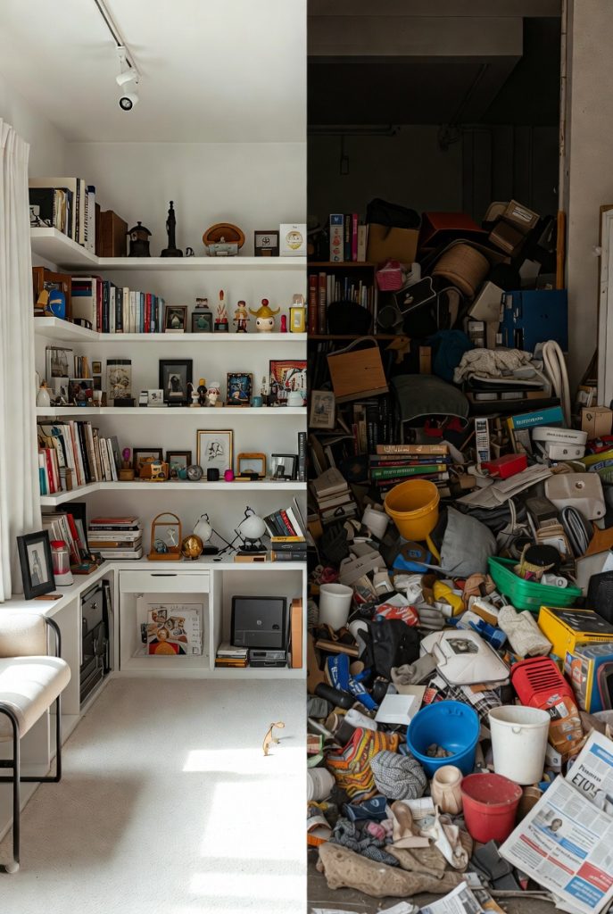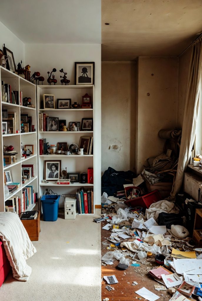 - Le Désordre : Les objets s’amoncellent de manière anarchique, sans logique ni système de classement. On trouve souvent un mélange hétéroclite d’objets, y compris des déchets, des emballages, de la nourriture périmée.